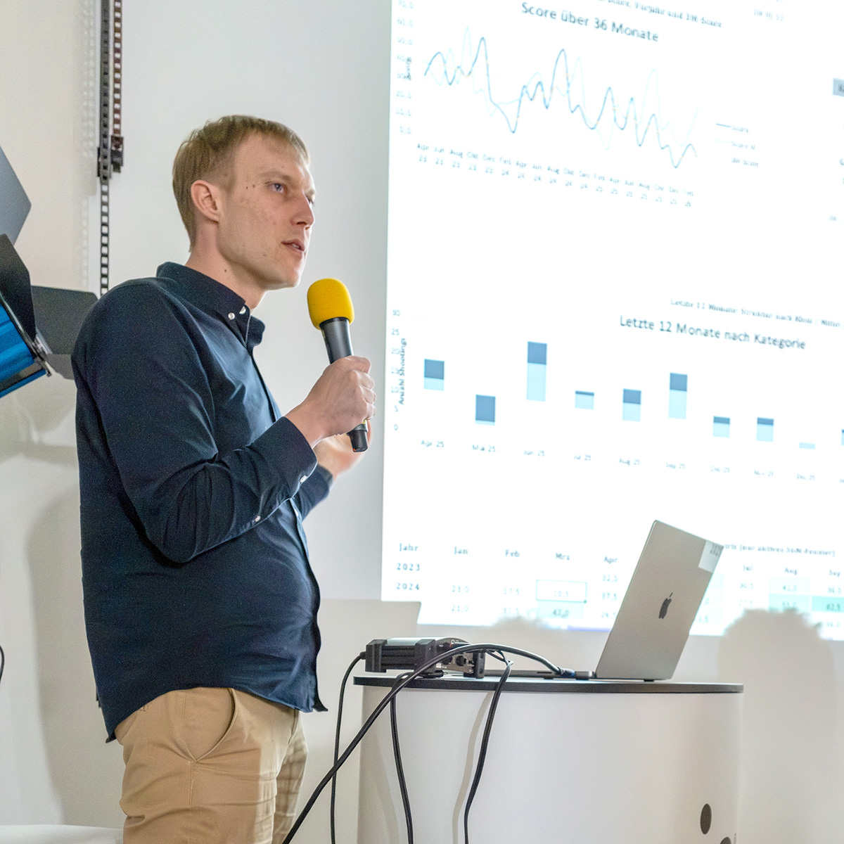 Zum Abschluß gab uns PIC-Mitglied Timo Lutz einen praxisnahen Shortcut zu einem Analyse-Tool, das er mittels KI zur Messung von Auftragslage und Auslastung seines Studios generiert hatte.