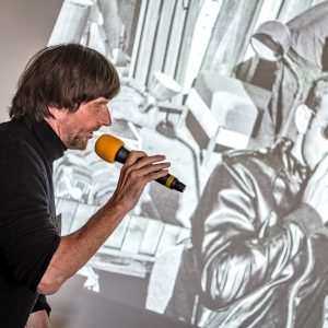 Wir freuten uns sehr, Matthias Steinbach wieder für einen äußerst unterhaltsamen Bildvortrag gewinnen zu können: „Berlin. Stadt der Glücksritter – oder vielleicht Europas größte offene Psychiatrie?“ Steinbach führte uns durch sein Berlin der vergangenen 30 Jahre. Veränderte Rechtslagen, stark geschütztes Persönlichkeitsrecht, mehr Argwohn der Mitbürger, offene Aggression machen die klassische Straßenfotografie schwieriger als je zuvor. Gemäß dem Credo von Bruce Gilden, Magnum Photos: „Ein gutes Street Foto riecht nach Straße.“ Bewahren, nicht verurteilen oder beurteilen. „Bildzeugnis für den Menschen“ ist dringlichster Aufruf der Straßenfotografie und zugleich die Grundlage von Steinbachs Arbeit.