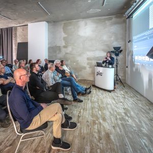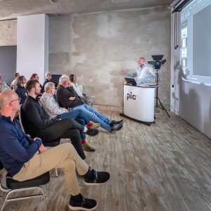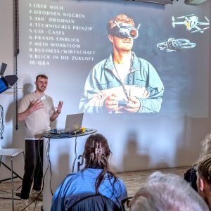 Drohnen sind längst fester Bestandteil moderner Foto- und Videoproduktion. Was aber bieten die neuen 360°-Drohnen? Aldan Kosnick zeigte uns neue Perspektiven, die klassische Bildgestaltung erweitern und neu denken lassen – und in einer zunehmend inszenierten Bildwelt eine besondere Form von visueller Authentizität schaffen. In seinem Vortrag zeigte der Hamburger Fotograf, Videoproduzent und FPV-Drohnenpilot, wie Drohnen heute professionell eingesetzt werden und wo sich 360°-Drohnen zwischen Spielerei und echtem Profi-Tool befinden. Anhand praxisnaher Beispiele gab er den PIC-Mitgliedern Einblicke in Workflow, Einsatzbereiche und das kreative Potenzial dieser Technik, vom Flug bis zur finalen Perspektive in der Postproduktion. Und nicht nur das – er hatte auch einige Drohnen mitgebracht, die wir im Anschluß unter seiner Anleitung ausprobieren konnten.